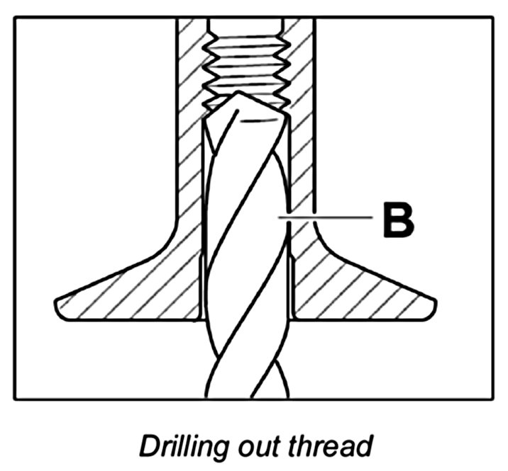 1. Drill out thread