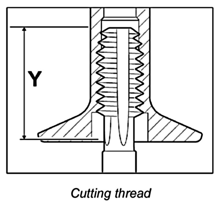 - While pressing in the base thread, a noticeably larger amount of force is required on the screw-in tool to form the internal thread. Pressing is finished when the screw-in tool can be turned further more easily.