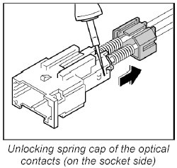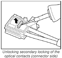 When exchanging the LWL, the optical contacts from the plug connection must be removed.