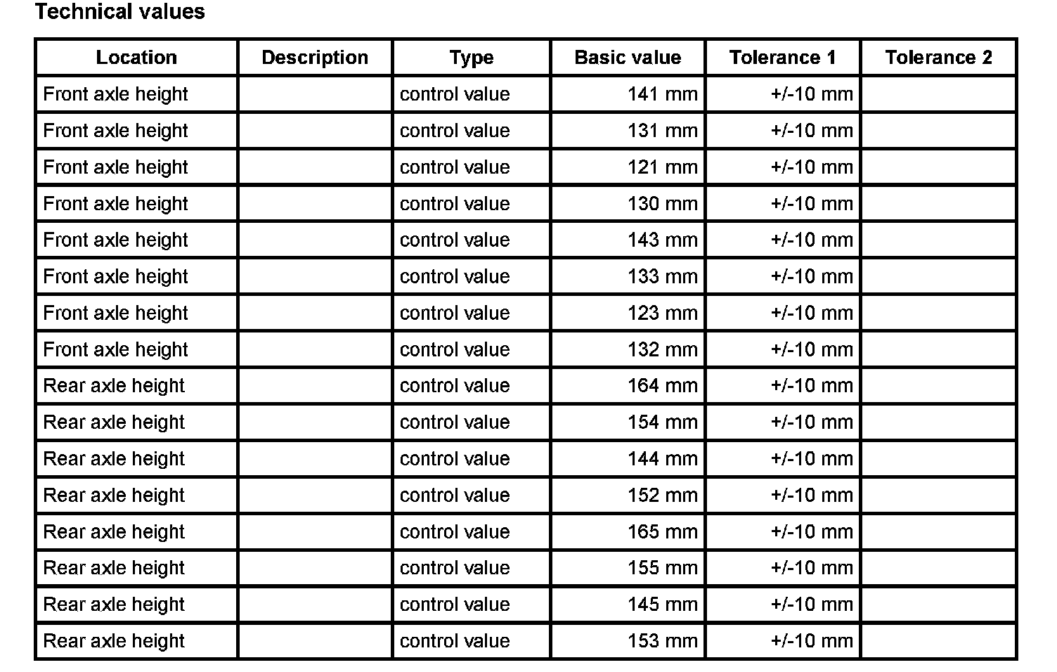 ^ The following values relate to the empty weight, i.e. full fuel tank, vehicle with tools but without driver or additional weights.