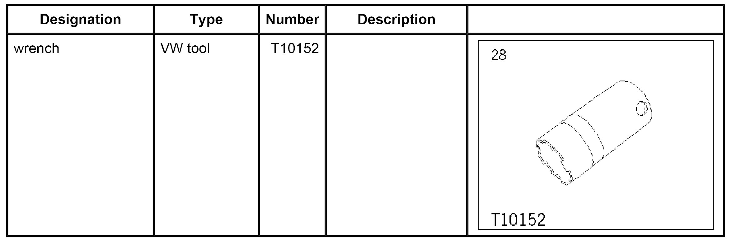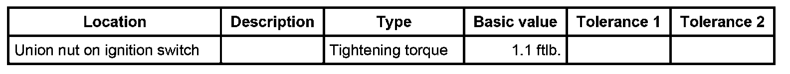 2. Position ignition switch in the instrument panel from below. Position union nut, re-adjust switch and tighten union nut using wrench T10152. - Tightening torque: 1.1 ftlb.