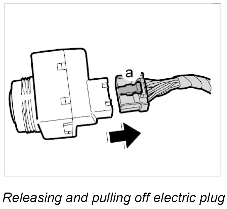 4. Release electric plug -a- and pull it off the ignition switch.