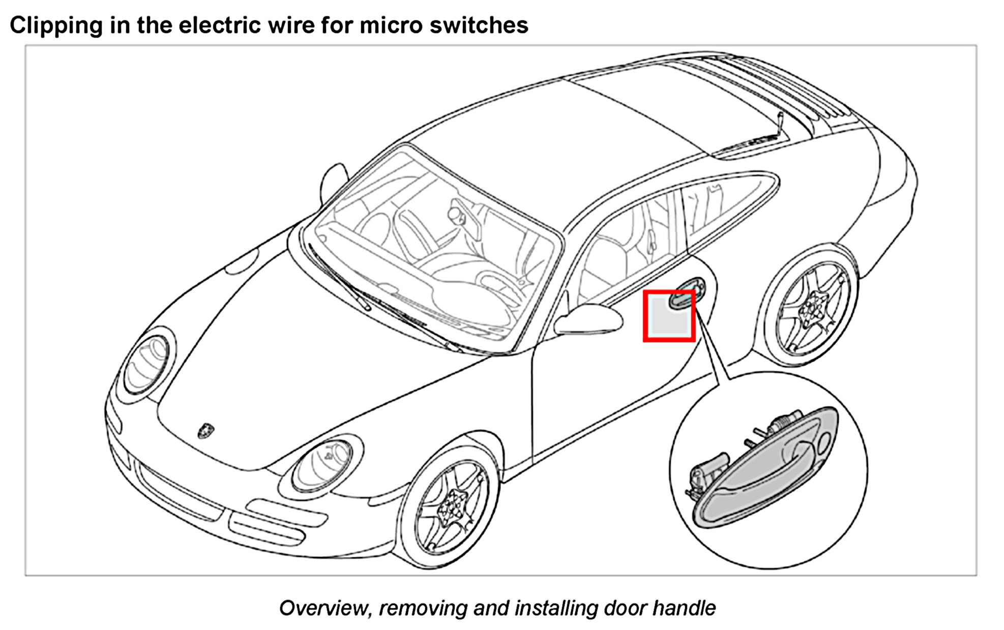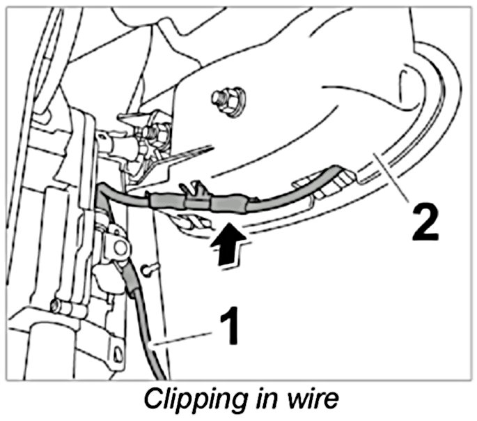 1. On the bottom part of door handle -2- clip in the electrical wire -1-.