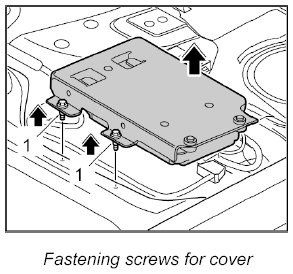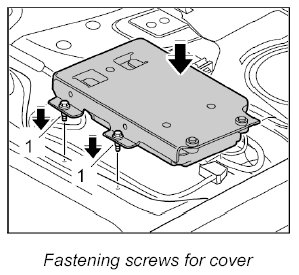 4. Turn over the cover and telephone control unit, position it on the floor of the vehicle and screw down with fastening screws -1-. - Tightening torque: 5 Nm (3.5 ftlb.)