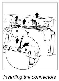 2. Push in electrical plug connections -C, B - until plugs are felt to engage.