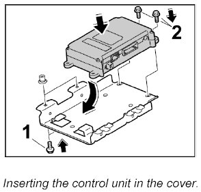 1. Insert control unit into the cover and screw tight with the two fastening screws -2-. - Tightening torque: 2 Nm (1.5 ftlb.)