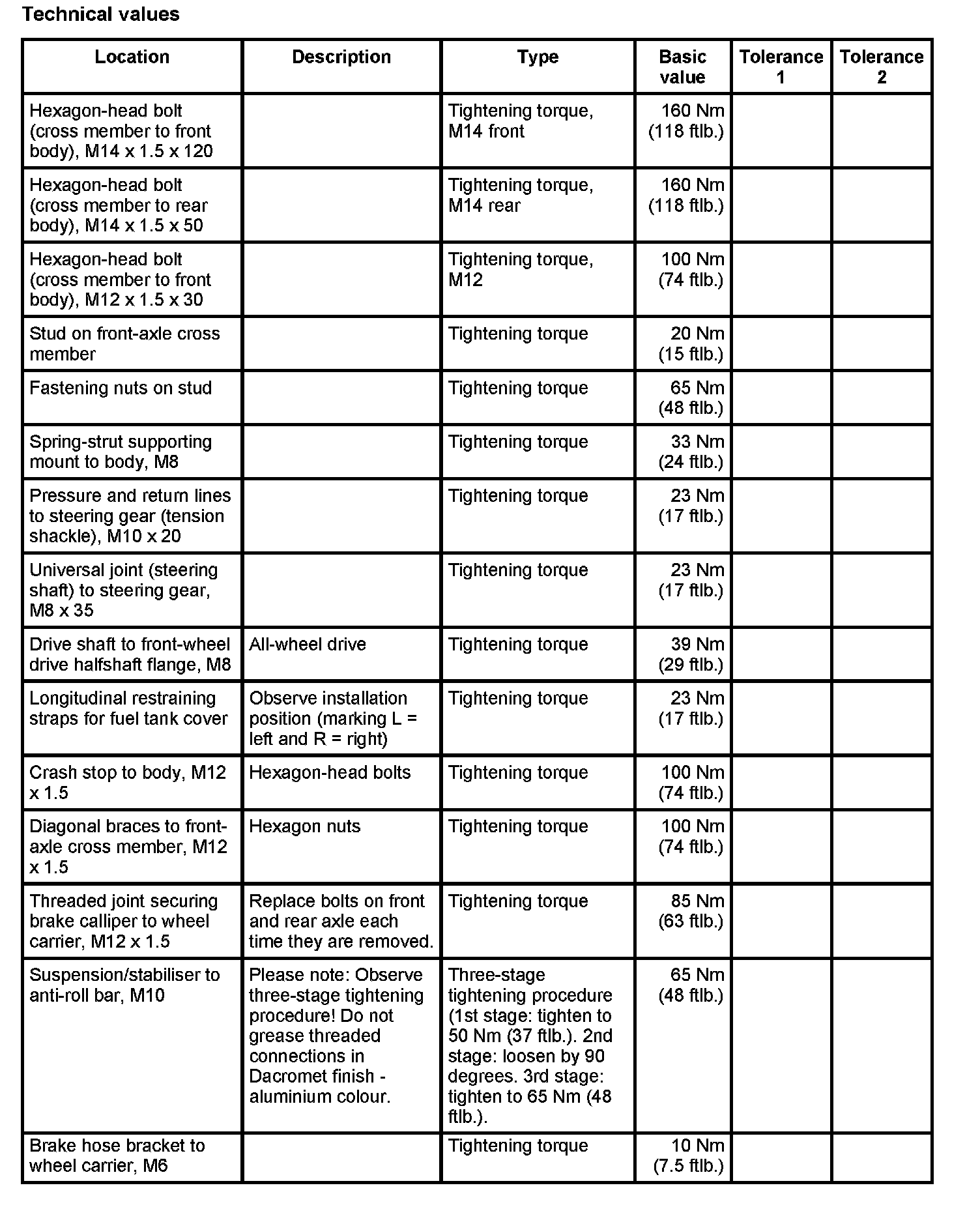 -> Tightening torque, M14 front: 160 Nm (118 ftlb.)