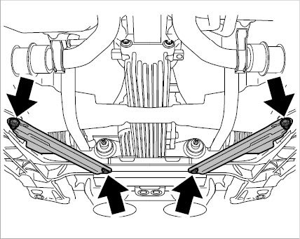 3. Loosen anti-roll-bar mount -arrows- and allow anti-roll bar to hang.