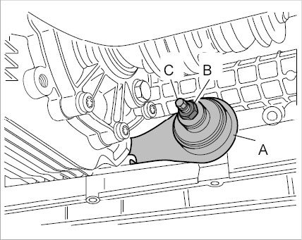 1. Pull connector -A- from sensor for HBA and loosen threaded joint -B- on control lever.