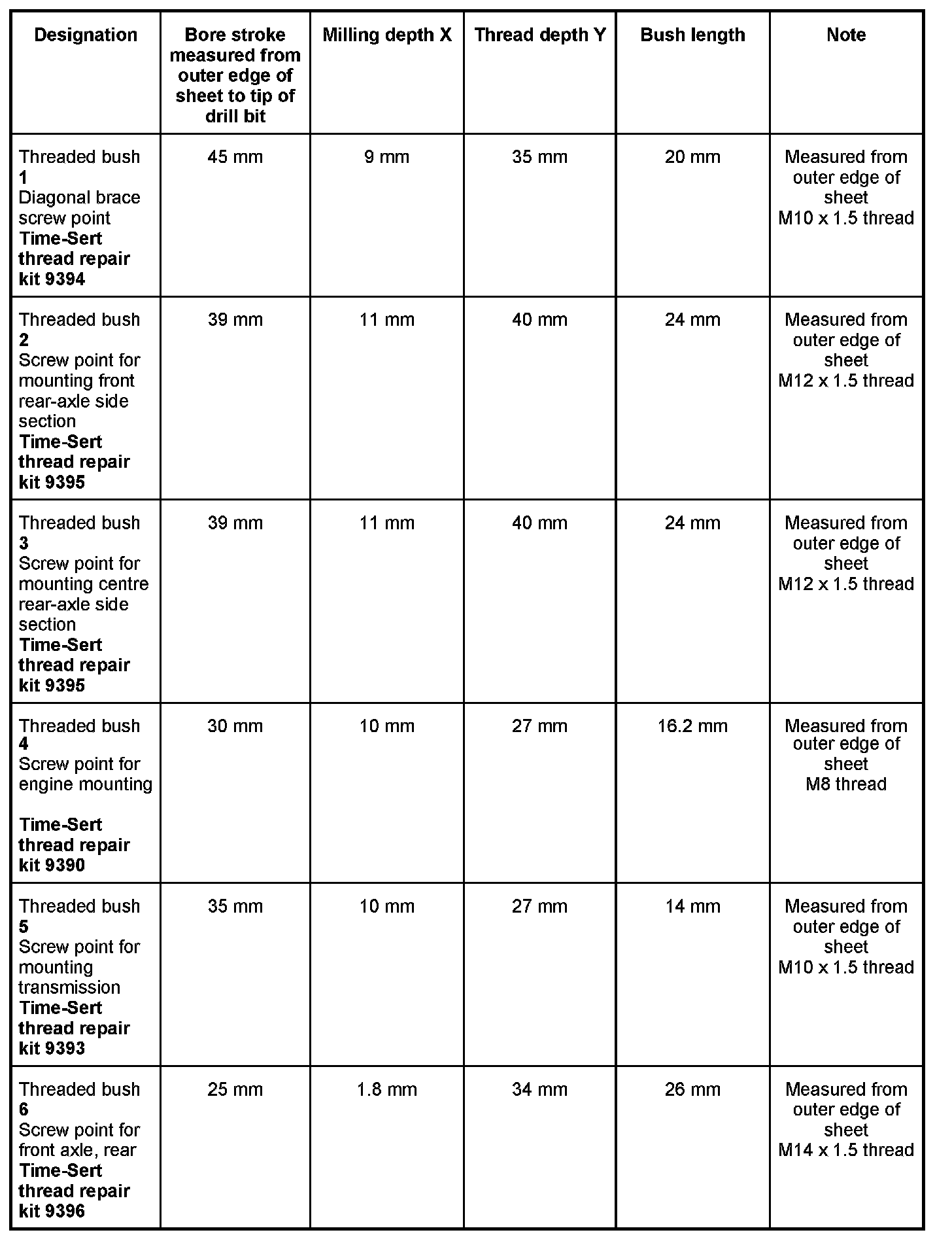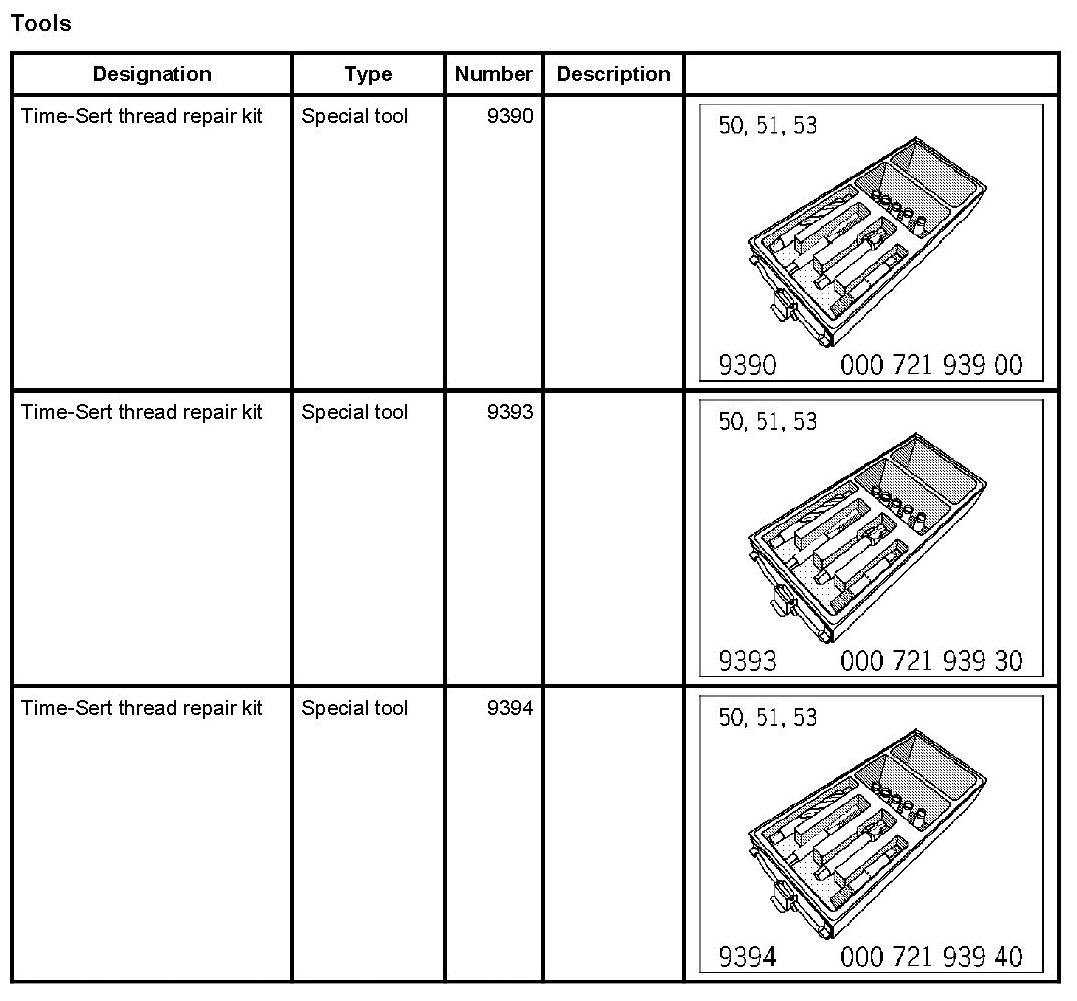 - Thread repairs can only be carried out using the Time-Sert thread repair system.