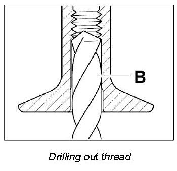 1. Drill out thread