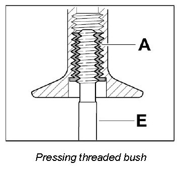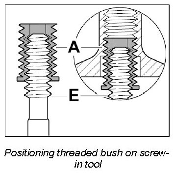 Screw threaded bush A in fully (note bush length classification) using the screw-in tool E.