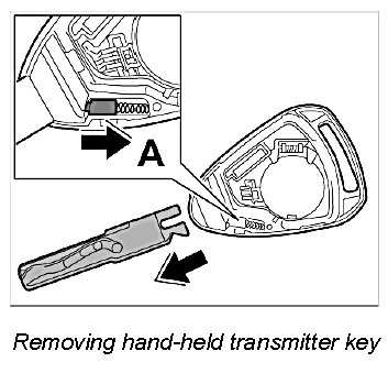 1. Push the sliding latch back using a small screwdriver -arrow A- and pull the key out of the bottom part.