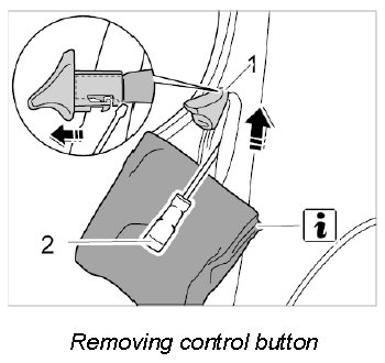 2. Insert a screwdriver -2- underneath the control button and press the control button -1- out.