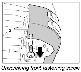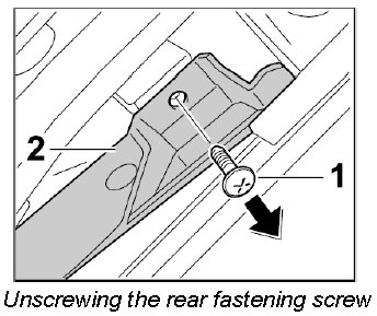 2. Unscrew rear fastening screws 1 from the control part trim panel 2.
