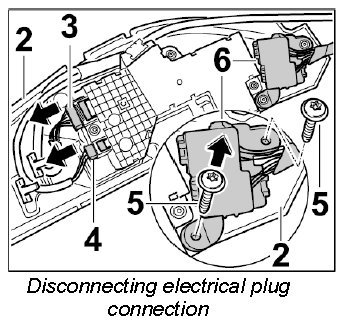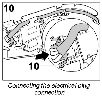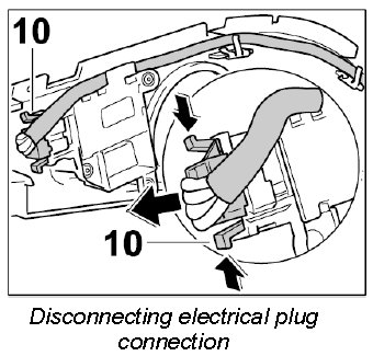 4. Disconnect electric plug connection 10 by pressing together the lugs arrow.
