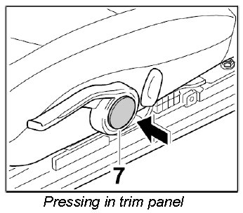 2. Insert control part trim panel 2 into the cushion in direction of arrow.