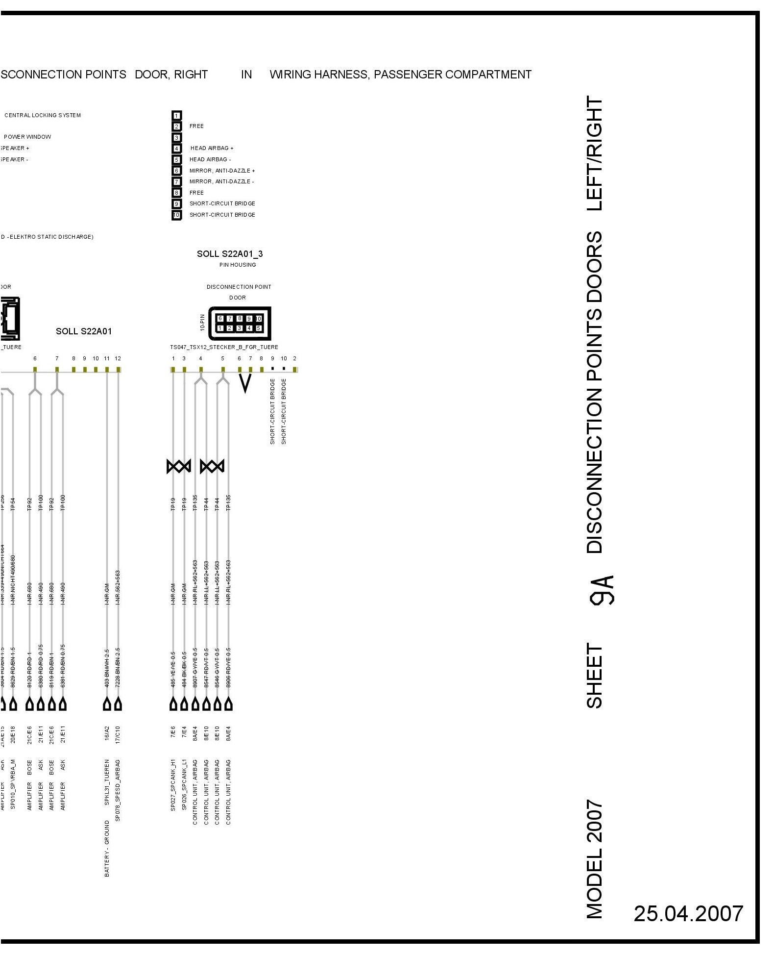 Disconnection Points Doors Left/Right - Sheet 9A (Part 2):