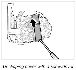 7. Unclip the cover for the fuse elements with a screwdriver.