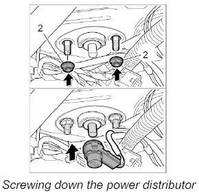 7. Screw down power distributor with the two fastening screws -2-. - Tightening torque: 11 ftlb.