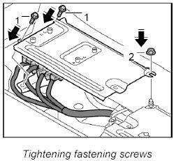 5. Tighten both fastening screws -1- and the fastening nut -2-. - M6: 10 Nm (7.5 ftlb.) - M6: 10 Nm (7.5 ftlb.)