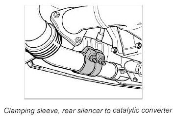 1. Screw off M8 fastening nuts on clamping sleeve and slide sleeve onto the silencer pipe. If corroded, spray sleeve with penetrating oil or heat it up.