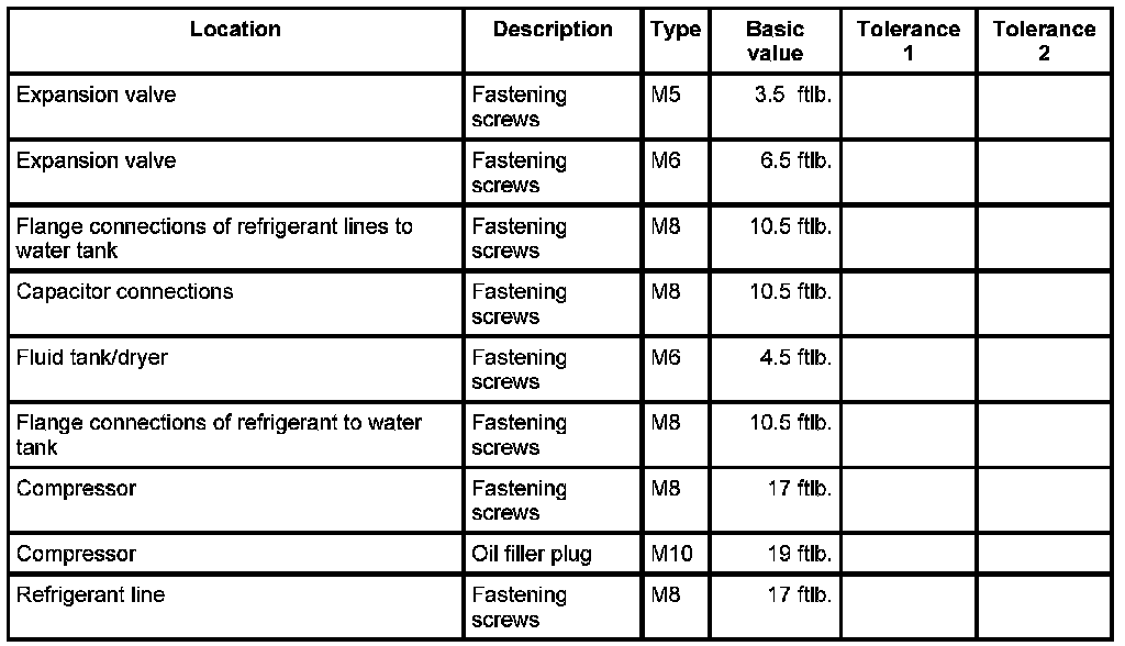 Tightening torques for air-conditioning system