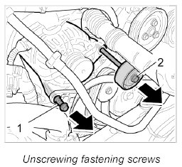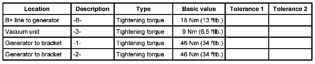 5. Secure the generator with the two fastening screws -1, 2-. - Tightening torque: 46 Nm (34 ftlb.) - Tightening torque: 46 Nm (34 ftlb.)