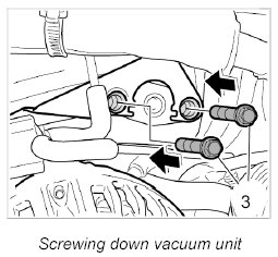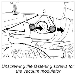 2. Unscrew the two fastening screws -3- for the vacuum modulator.