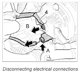 4. Release and unplug the electrical connector -A-.
