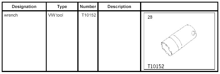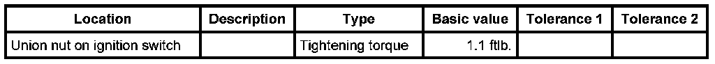 2. Position ignition switch in the instrument panel from below. Position union nut, re-adjust switch and tighten union nut using wrench T10152. - Tightening torque: 1.1 ftlb.