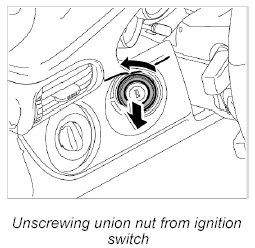 2. Turn union nut using a narrow plastic spatula, for example, or using the special wrench T10152 tool and unscrew the ring from the ignition switch.