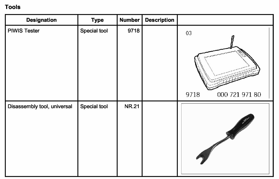 The procedure described here has been structured in general terms; different text or additions may appear in the PIWIS Tester 9718.