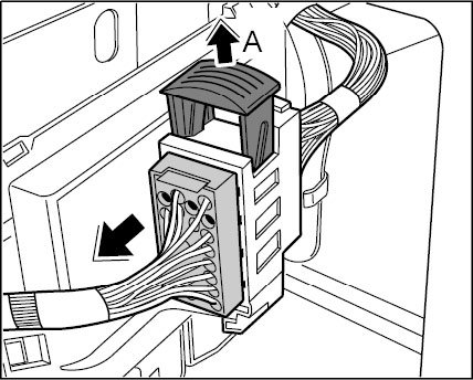 8. Press locking tabs -A- and disconnect plug connections from the control unit.