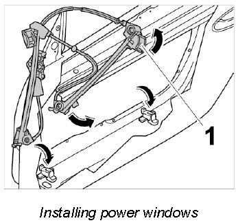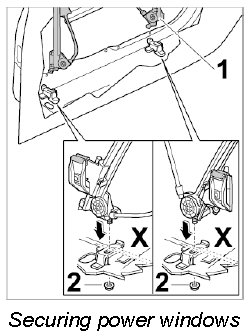 3. Unscrew fastening nuts -2- on power windows -1-.