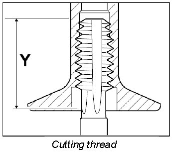 - While pressing in the base thread, a noticeably larger amount of force is required on the screw-in tool to form the internal thread. Pressing is finished when the screw-in tool can be turned further more easily.