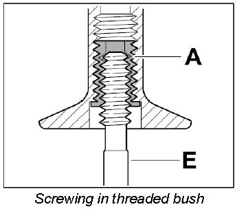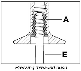 Screw threaded bush A in fully (note bush length classification) using the screw-in tool E.