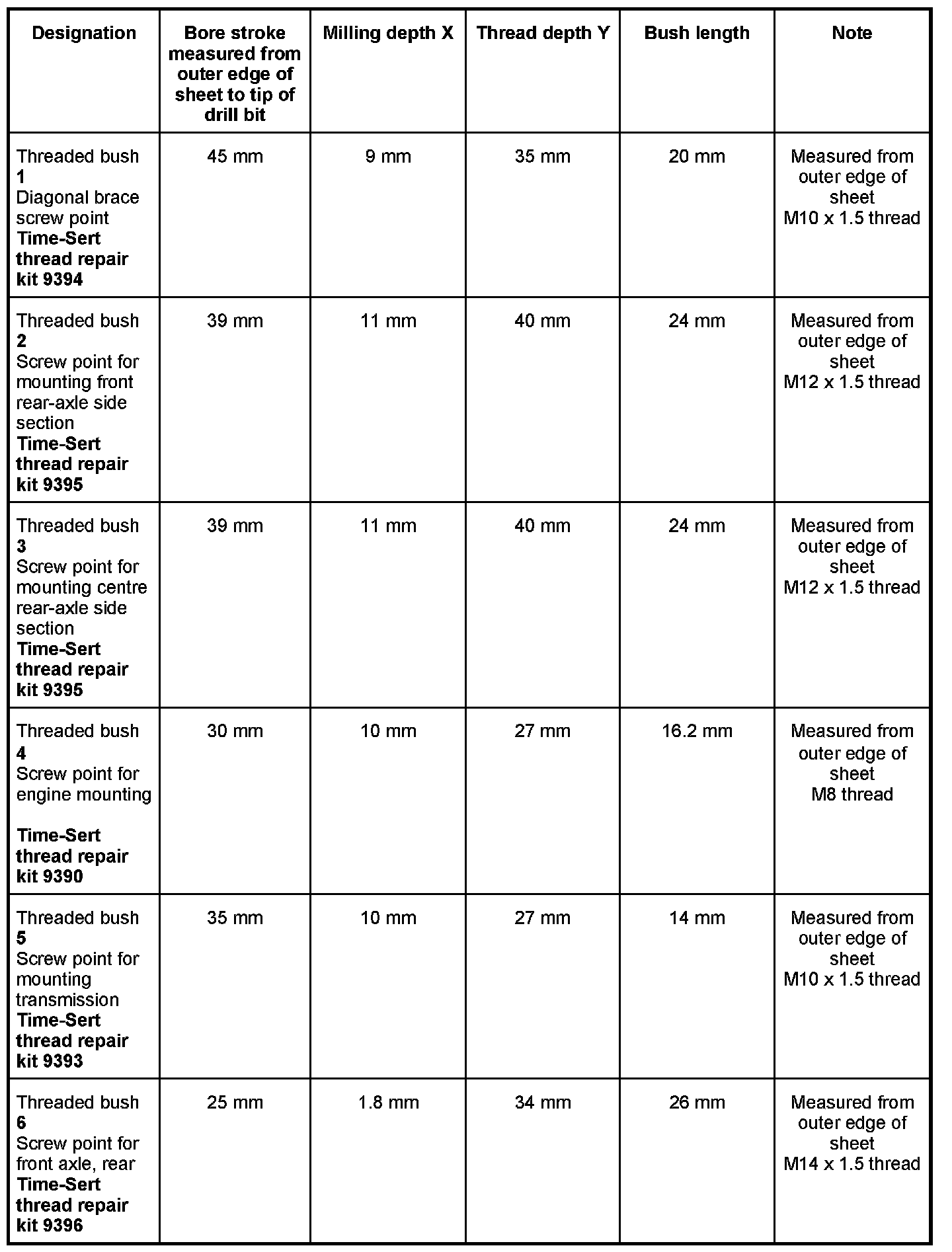 Cut thread into the chassis bushing using a cutting tool D up to dimension Y. See Table. Clean the thread on the chassis bushing (blow it out).
