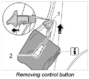 2. Insert a screwdriver -2- underneath the control button and press the control button -1- out.