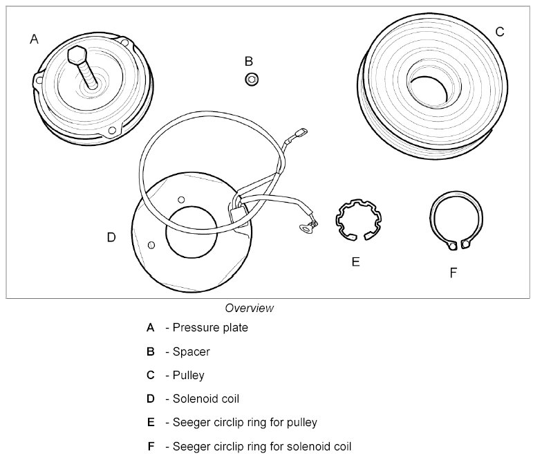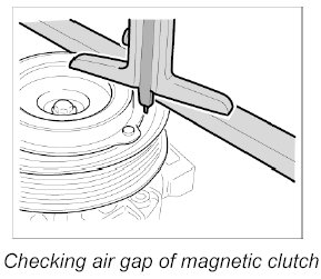 INFORMATION: If a new magnetic clutch is installed, the air gap between pressure plate and pulley must be checked with a depth gauge.