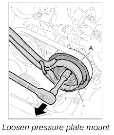 2. Screw in an M8 screw -2- into the thread of the pressure plate until the pressure plate -A- can be removed by hand.