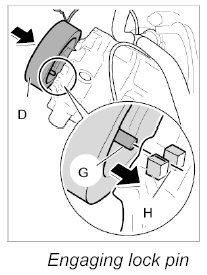 1. Place solenoid coil -D- on the compressor housing. The lock pin -G- must engage in the locking hole -H-.
