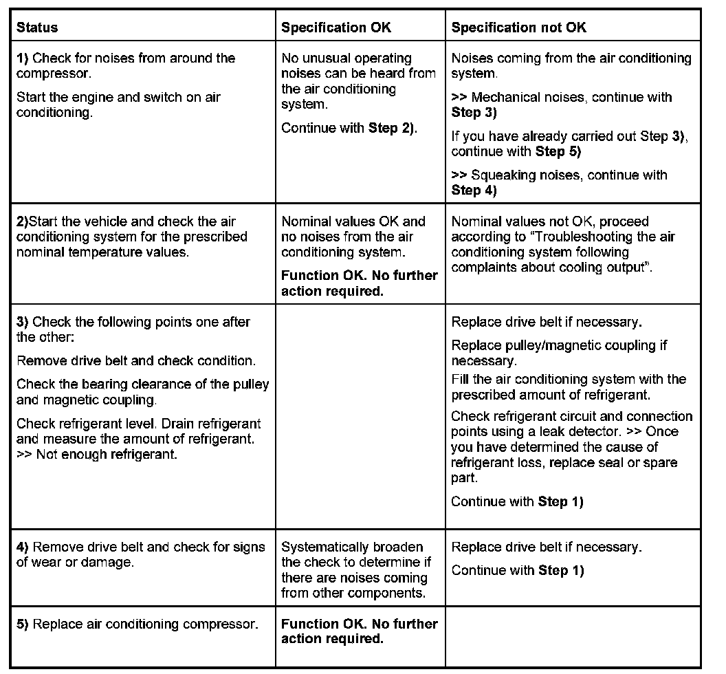 - The troubleshooting steps shown must be used if complaints are received about noises in the air conditioning system.