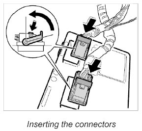 1. Press electrical plugs into control unit and lock them -arrow- so they are felt to engage.