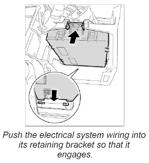 2. Push vehicle electrical system control unit upwards into the holder. It must engage properly. Make sure the electrical leads are not pinched.