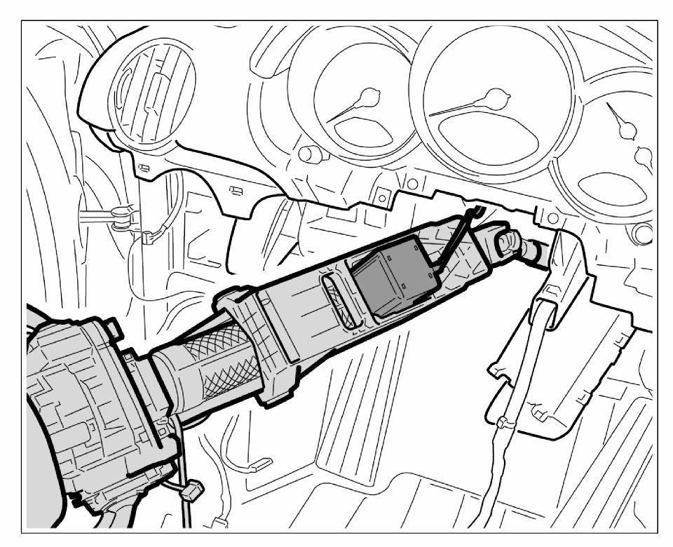 2. Slide the ELV control unit back, disengage it from the steering column and remove it by moving it upwards.