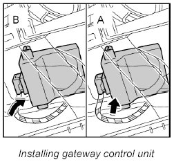 3. Slide the gateway control unit into the cover -B- and clip it in -A-.