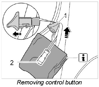 2. Insert a screwdriver -2- underneath the control button and press the control button -1- out.