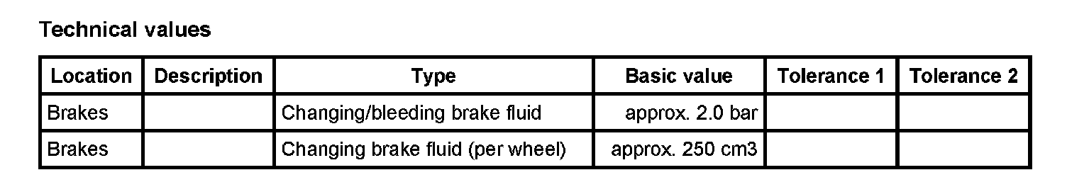 5. Open every bleeder valve until clear, bubble-free brake fluid emerges and until the corresponding change quantity per brake calliper is reached. Per brake calliper - Changing brake fluid (per wheel): approx. 250 cm3.