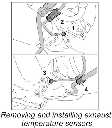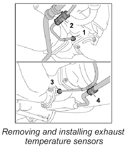 1. Remove exhaust temperature sensors from the bottom of the engine.